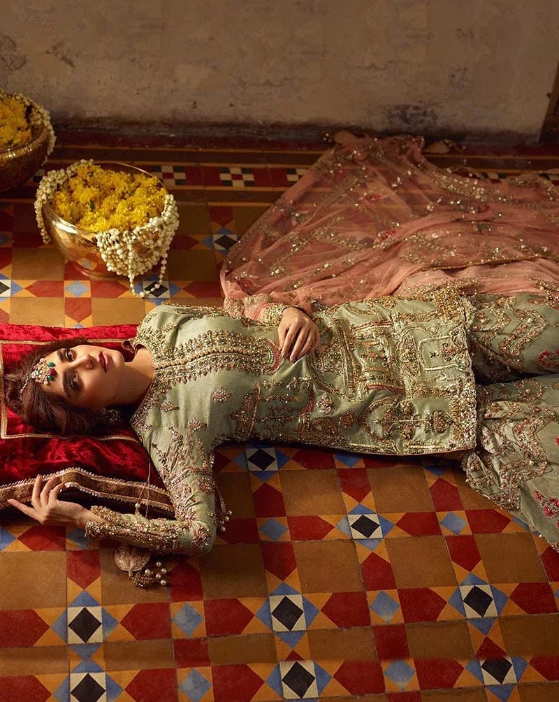 Color: Zamarud Green (Base), Tea Pink & Sindoori Red (Dupattas)
