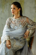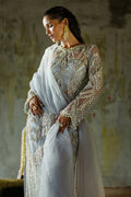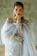 A stunning blend of elegance and sophistication, featuring an embroidered net shirt paired with luxurious raw silk trousers. The look is completed with an ethereal organza dupatta for timeless eleganc