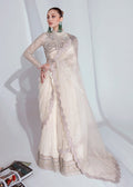 A beautifully designed organza dupatta featuring intricate scalloped edges and a delicate all-over spray, providing a graceful and polished finish to the bridal look.