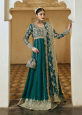 Elegance meets tradition in this exquisite long bottle green Pishwas ensemble, a timeless piece that exudes grace and sophistication. The Pishwas, with its floor-length silhouette, beautifully drapes the wearer in rich, verdant hues, creating a regal and captivating presence. The meticulously composed embroidery adorning the outfit adds a touch of opulence, showcasing intricate patterns that seamlessly blend tradition with modern aesthetics.Paired with a matching Churidaar Pijama, the ensemble ensures a harmonious flow from top to bottom,To complete this ensemble, organza dupatta adorned with complementary embroidery adds the perfect finishing touch.