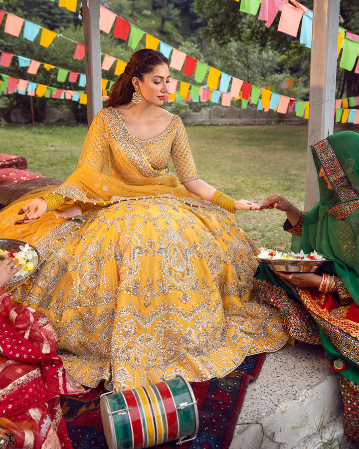 Description: A yellow tulle and silk lehnga choli set featuring floral motifs and bootis wrought using dabka, zardozi and resham among other hand embroidery techniques.Handcrafted with meticulous care, our pieces have a lot of diligence and love invested in them. The exquisite craftsmanship requires laborious hours.